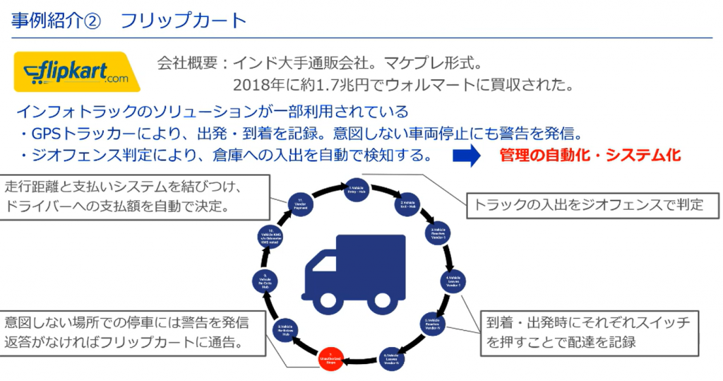 はじめは位置情報をトラッキングするシンプルなものでしたが、不正が起こらないように車両をコントロールするものまで出てきています。」と話しました。