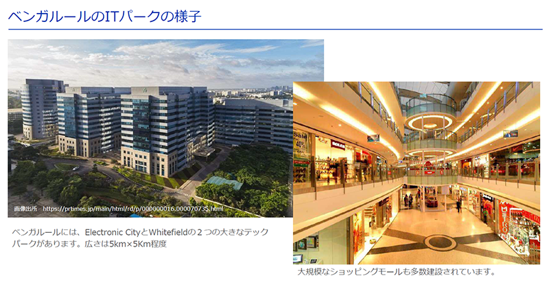 1990年から2000年代にかけてはオフショア※1とBPO※2の拠点として発達していたインドですが、最近では大手グローバル企業が数千人規模の高度理系人材を集めた研究開発センターを設立する動きがあり、ベンガルール市はその拠点都市になっていると説明がありました。