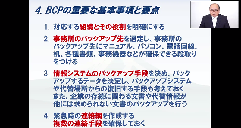 ④BCPの重要な基本事項と要点