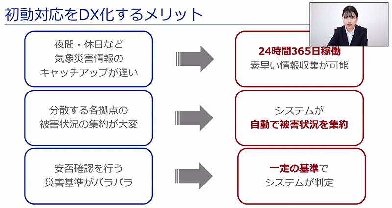 そしてこれらの課題の解決策として、初動対応をDX化することを提案しました。