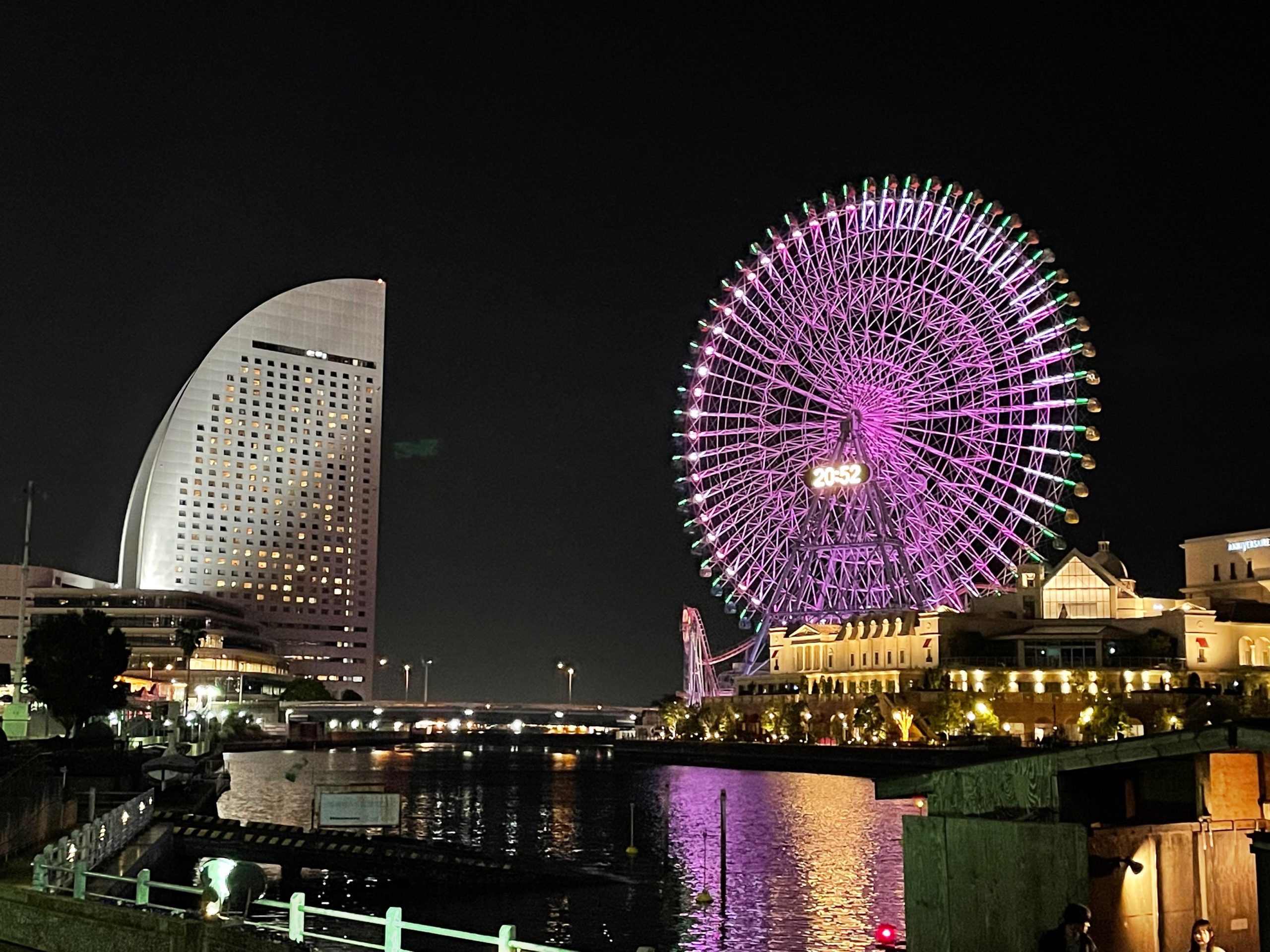 先日横浜・みなとみらいに出かけたところ、たまたまなのかコスモクロック21が桜色にライトアップされていました!