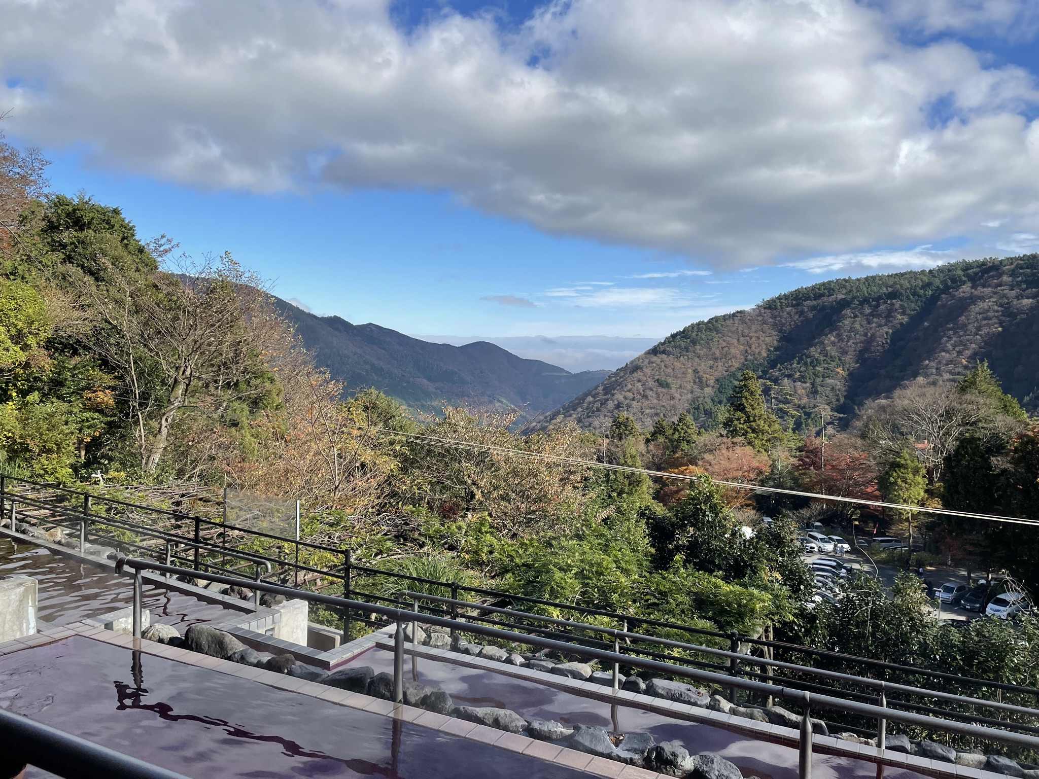箱根小涌谷の温泉施設「ユネッサン」の露天風呂からの風景です。気持ちのよい秋晴れでした。ついこの前まで暑かったのにいつの間にか空が高くなっていて、時の流れの早さを感じます。