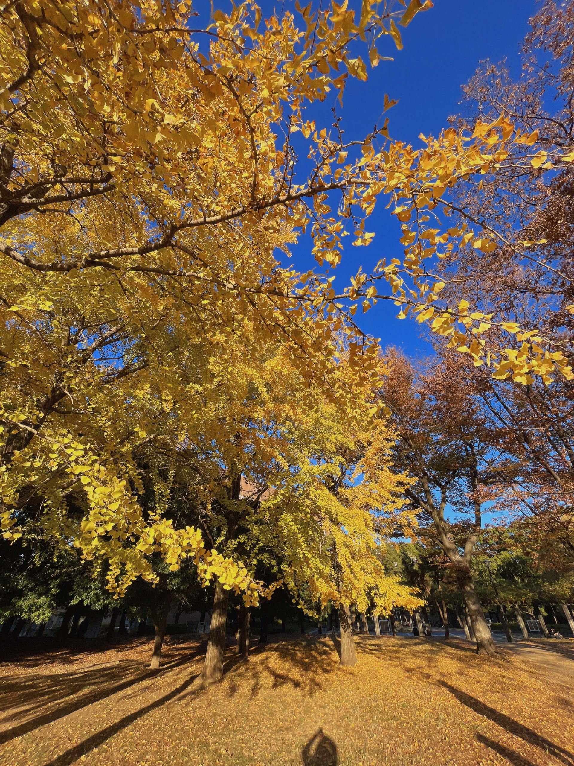 散歩中に偶然通った公園で満開なイチョウを見つけました。