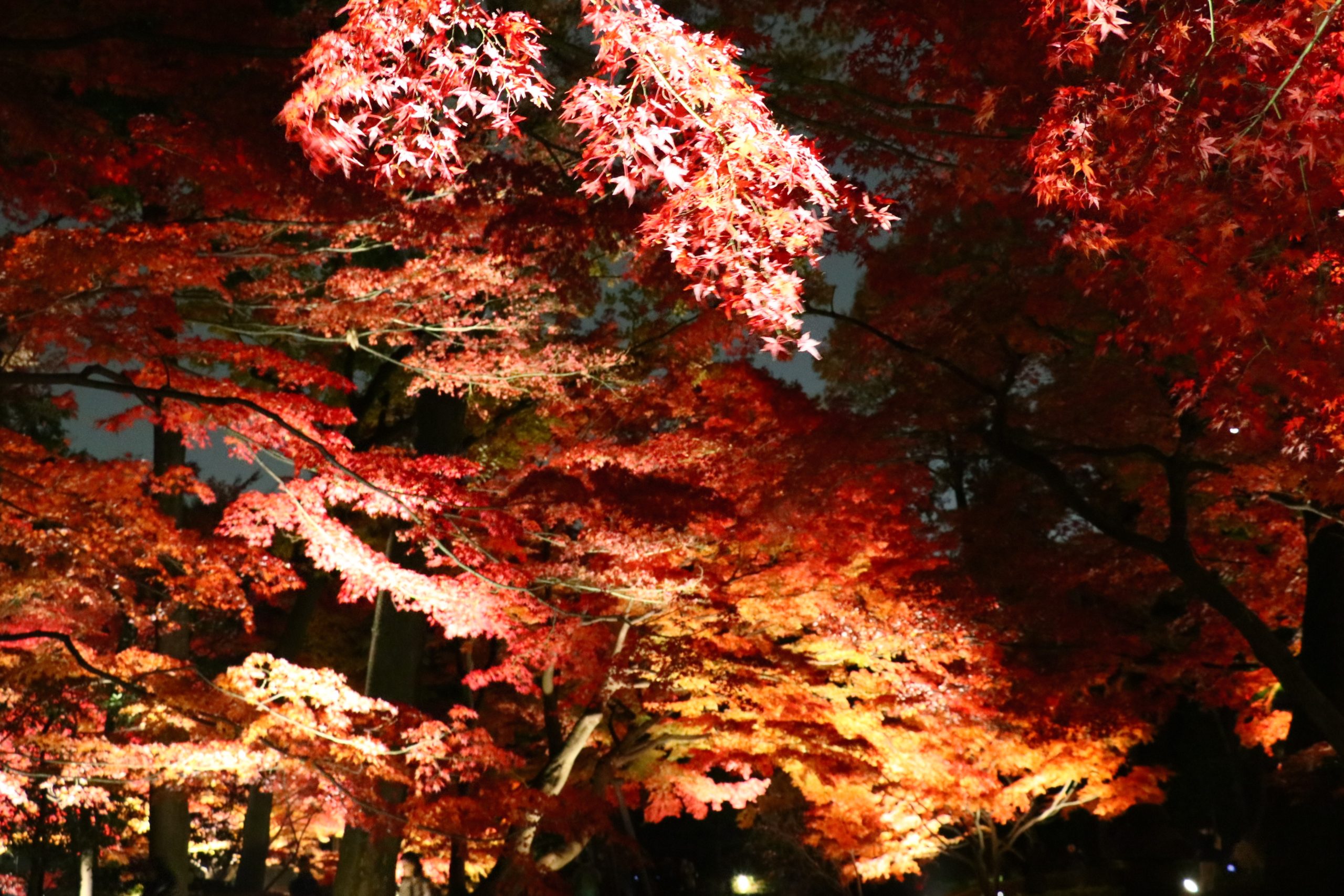 東京都杉並区にある紅葉の名所・大田黒公園。見頃の時期には夜間にライトアップ実施しており、多くの人で賑わう。