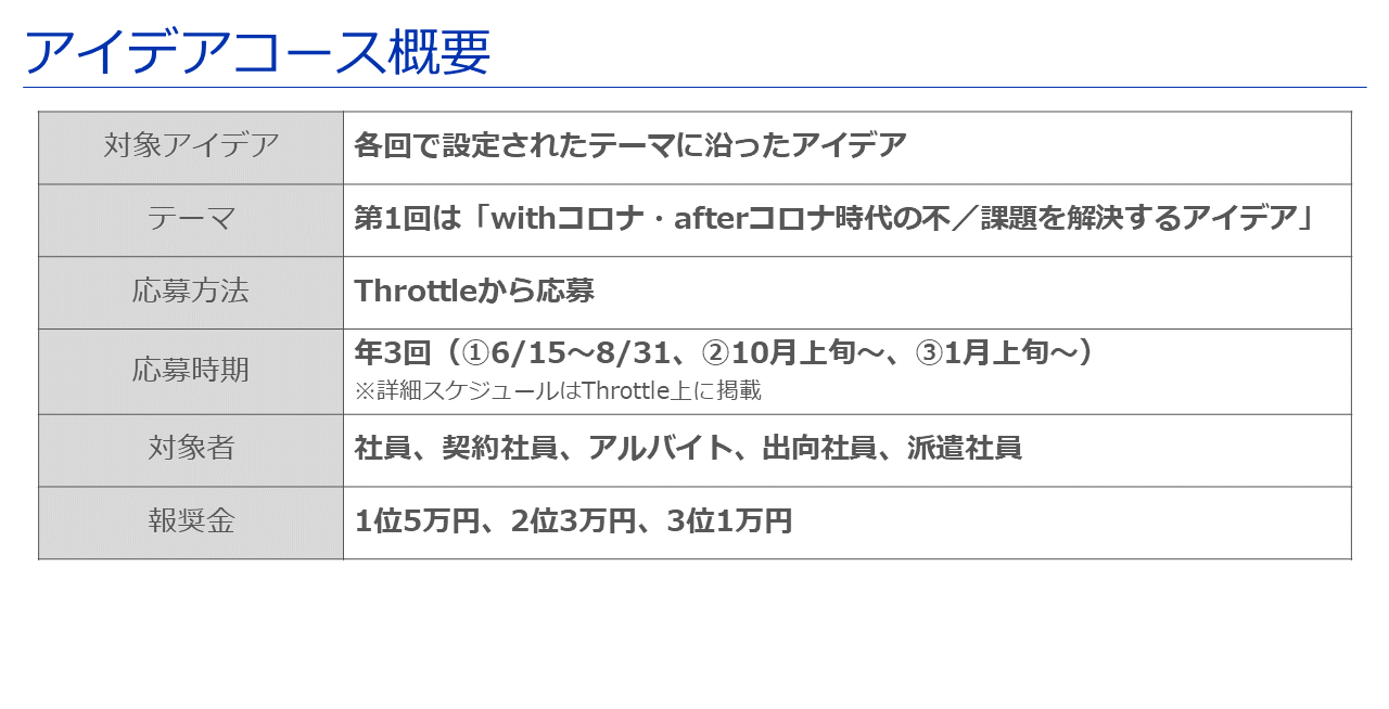 今年度は専用webツール「Throttle」からアイデアの応募・閲覧・投票が可能です。