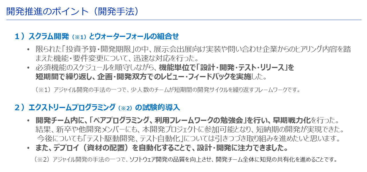 例えば、「開発・営業・企画の3人・1チーム」での推進が最適ではと考えております。