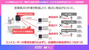 業界によって配送ルールが決まっているため、一気通貫ですべての業界に対応できるものをシステム化するのは難しく、サプライチェーン全体の最適化を物流DXの対象としていると語る小濱さん。