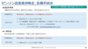 ゼンリングループの持株会に入会することができます。8月はおわってしまったので、次回入会希望の方は11月に入会手続きを行ってください。