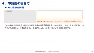その他の修正要望‥申請フォーム以外の規程について、修正や追記をしたい内容がある場合は具体的にどう記載したいか記入してください。