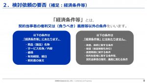 経済条件等に当てはまるかわからない場合には、法務部までお問い合わせください。