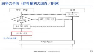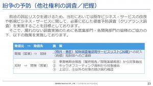 調査に漏れがないように2つの施策を実施。 知的財産部からのお願いとして、開発担当の方はサービスリストへのご記入をお願いします。