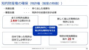 特許権とは、有用な技術を世の中に公開することを条件に一定期間独占排他的な権利を与えるもの。期間満了後は、誰でも自由にその技術を使うことができます。