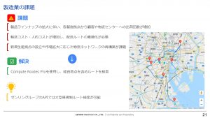 まず、はじめに岩谷さんよりGoogle MapsとGoogle Maps Platformの違いと業務システムへの実装ニーズの高まりについて解説いたしました。