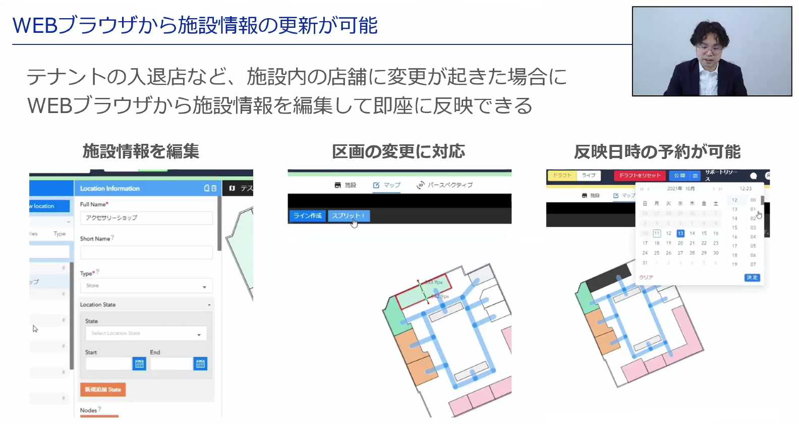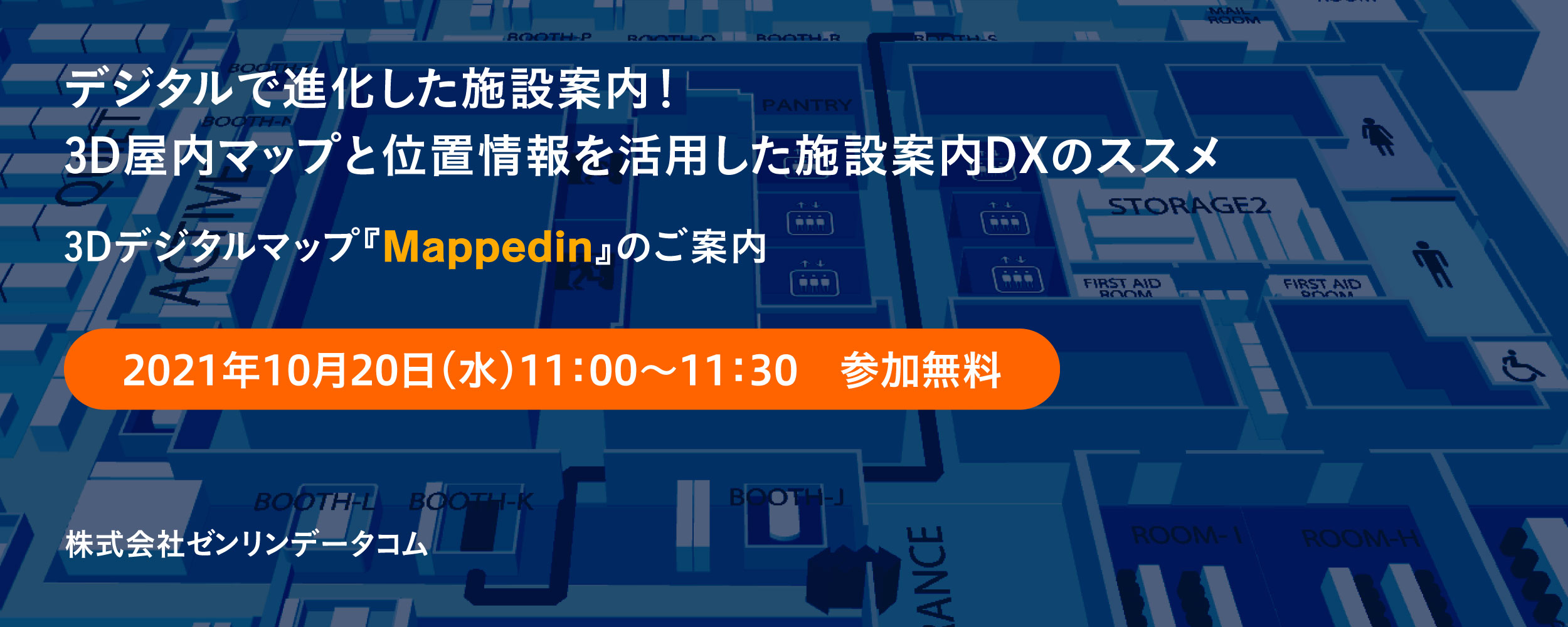 2021年10月20日(水)11:00~11:30、ウェビナー「デジタルで進化した施設案内!3D屋内マップと位置情報を活用した施設案内DXのススメ」が開催され、事業企画部の山田 啓介さん(以下 山田さん)が登壇しました。