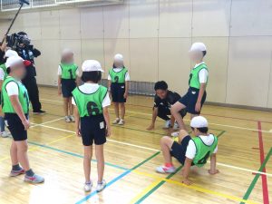 最初に準備運動とウォーミングアップを行い、選手たちと一緒に体を動かしながら、和やかな雰囲気の中で体験が始まりました。