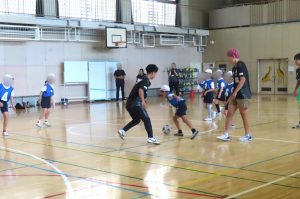 続いて児童たちは4チームに分かれて、日本代表選手とのミニ試合に挑戦しました。