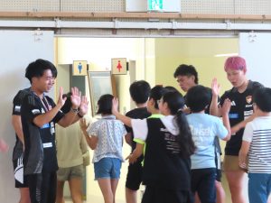 選手のプレーに驚きながらも、児童たちが積極的にボールを追いかける姿が印象的でした。