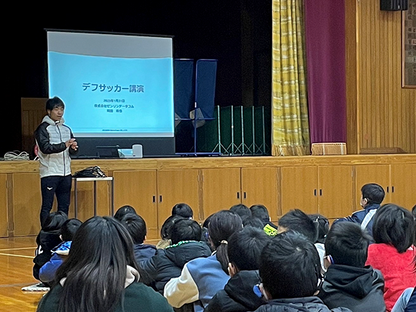 岡田選手は3校で、デフサッカーや聴覚障がい、ノーマライゼーションの理念などについて、講演を行いました。