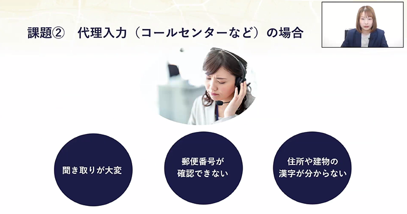 はじめに及川さんは住所入力における課題について説明しました。