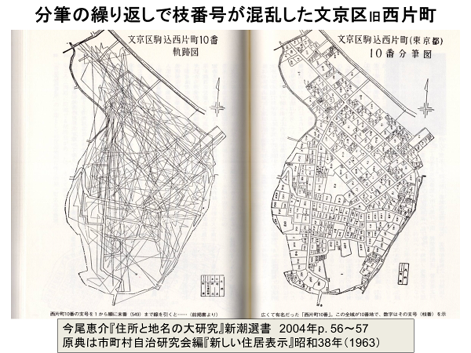 今尾さんは様々な資料をもとに、住所・地名の歴史や、複雑な住所の成り立ち・表記について解説しました。