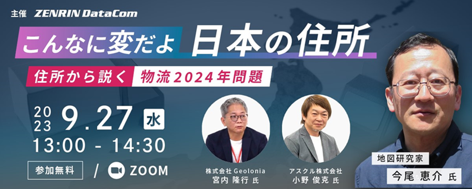 2023年9月27日(水)13時00分~14時30分、日本の住所表記の課題に焦点を当てた当社主催の物流事業者向けウェビナー「こんなに変だよ日本の住所 ~住所から説く物流2024年問題~」が開催されました。