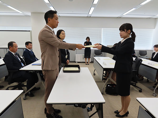 授与式では清水社長より内定者全員に、手渡しで内定証書が授与されました。