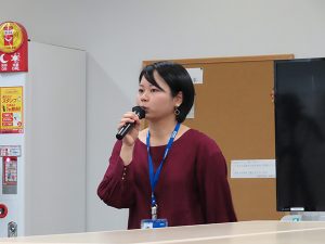 全員が内定証書を受け取った後、コーポレート本部の木島副本部長が入社後の配属発表を行いました。