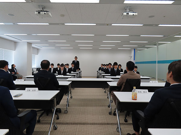 内定者は緊張した面持ちで清水社長のお言葉や自分の配属先を聞き、内定式に臨みました。