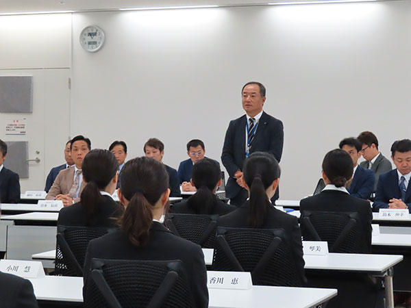 清水社長のお話の後、役員全員が内定者の方へ自己紹介と歓迎の言葉を送りました。