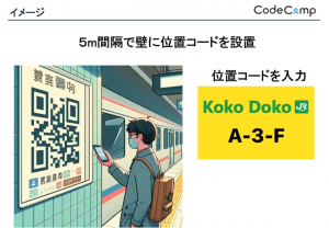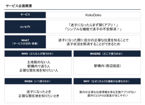 開発背景として、チームメンバーの一人が大人になってから新宿駅で迷子になった経験から「Koko Doko」アプリの開発に至りました。