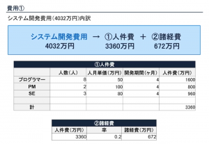 システム開発費用や収益を計算し、得られる経済効果について説明いたしました。