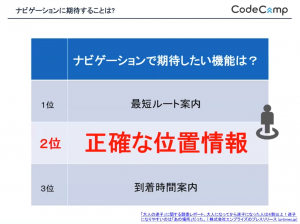 また、屋内ナビゲーション機能の必要有無の調査と使用する際に求められているニーズを説明いたしました。