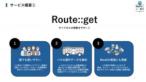 そこで、正確な運行情報の提供に加えて、バリアフリー設備や待機環境などの事前案内を行うサービスを目指し、「Route::get」の開発に至りました。