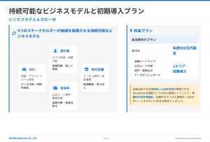 「RoutePost」は、自治体・旅行者・地元店舗・企業が価値を循環させる持続可能なビジネスモデルとして構築し、PoC段階のプランとして500万円で固定したプランを設定しました。