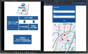 チームBのメンバーは佐橋 舞華さん、魚谷 美羽さん、長野 月音さん、于 政弘さん、佐治 麟太朗さん、佐々木 幸太朗さんの6名で、すべての人の移動をサポートするバス案内アプリ「Route::get」を開発しました。