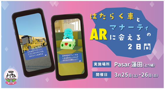 3月25日(土)・26日(日)、東北自動車道 Pasar蓮田(上り線)にて、当社が運営協力をする春休みイベント「はたらく車とマナーティのARに会える2日間」が開催されました。