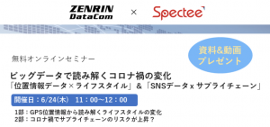 株式会社Specteeとの共催セミナー「ゼンリンデータコム×Spectee|ビッグデータで読み解くコロナ禍の変化「位置情報データ×ライフスタイル」&「SNSデータ×サプライチェーン」」にIoT事業本部 IoT第二事業部の川上 拓郎さん(以下 川上さん)が登壇しました。