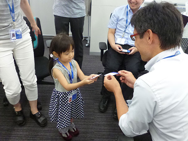 来ていただいたお子様は人見知りする子が少なく、たくさんの社員と名刺を交換していました。