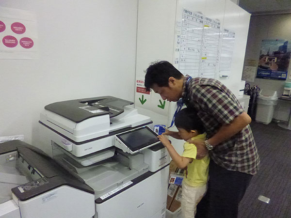 清水社長から授与された自分の社員証をコピー機に当てると、マップを印刷できるようになっています。