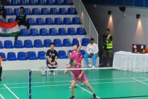 矢ケ部選手は、団体戦・個人戦の女子ダブルス・女子シングルスの種目に出場しました。
