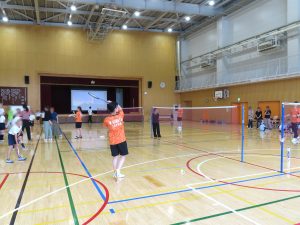 去年に引き続き、今年も府中市の小学生とバドミントンをすることができ、とても有意義な時間でした。