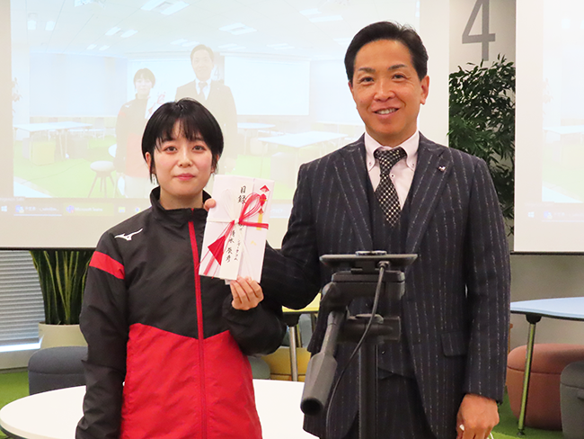 つづいて清水社長より激励の言葉が贈られ、目録が授与されました。
