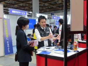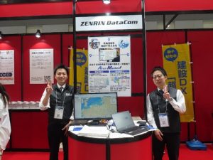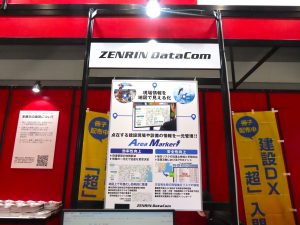 ブースでは、建設業界が就業者減少や高齢化という構造的な課題を抱える一方で、震災復旧工事や老朽化したインフラの補修・改修等、建設需要が増加している傾向について説明し、「Area Marker建設現場管理ソリューション」サービスを導入することで得られる効果について資料やデモを活用して説明いたしました。
