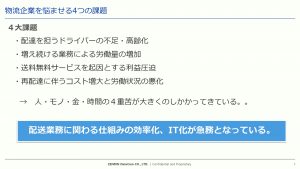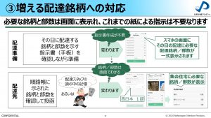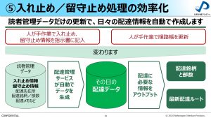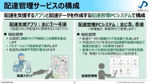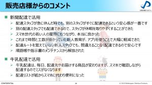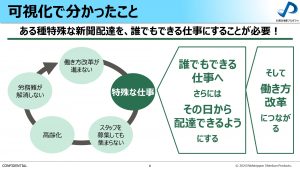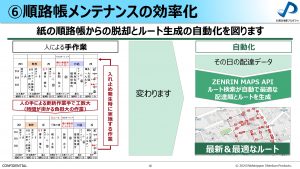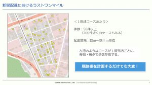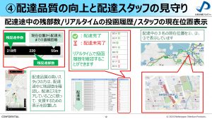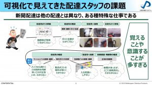 続いて、影山さんからデジタル技術を活用した新聞配達や生産性向上を目指して開発した配達管理サービス機能と導入効果について解説いたしました。