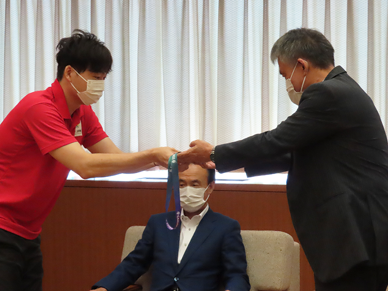 7月27日(水)、長原選手が朝霞市長を表敬訪問しました。