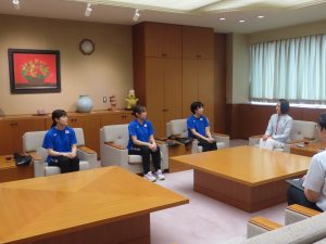 また、松下市長からは日頃の練習やバドミントンを始めたきっかけなどについての質問もあり、選手たちは一つひとつ丁寧に答えていました。