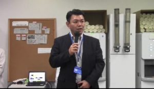 「おはようございます。高本と申します。今月から事業企画部に所属しております。前職では海外拠点でのR&D事業推進と国内拠点でのオフショア開発を通したアカウントマネジメントを行っておりました。まだ至らない点がございますが、いろいろな部門の方とお話をする中でアイデアを創出していきたいと思っております。よろしくお願いいたします。」