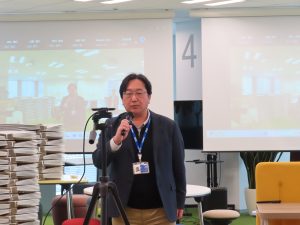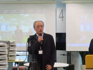 まず1点目。先ほど総務からもお話がありましたけれどもいよいよ今月から縮小化に向けた工事が始まります。ナビパークのスペースが板張りになっているのでここをオフィスになるように通常と同じようにカーペットをひいたりする工事や什器の移動、新しいエントランス部分の工事が始まりますので一時的に2月は狭くなると思いますけれども皆さんご協力のほどよろしくお願いいたします。