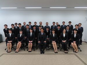 全員が辞令交付を受け取り、入社式は終了。全員で記念写真です。