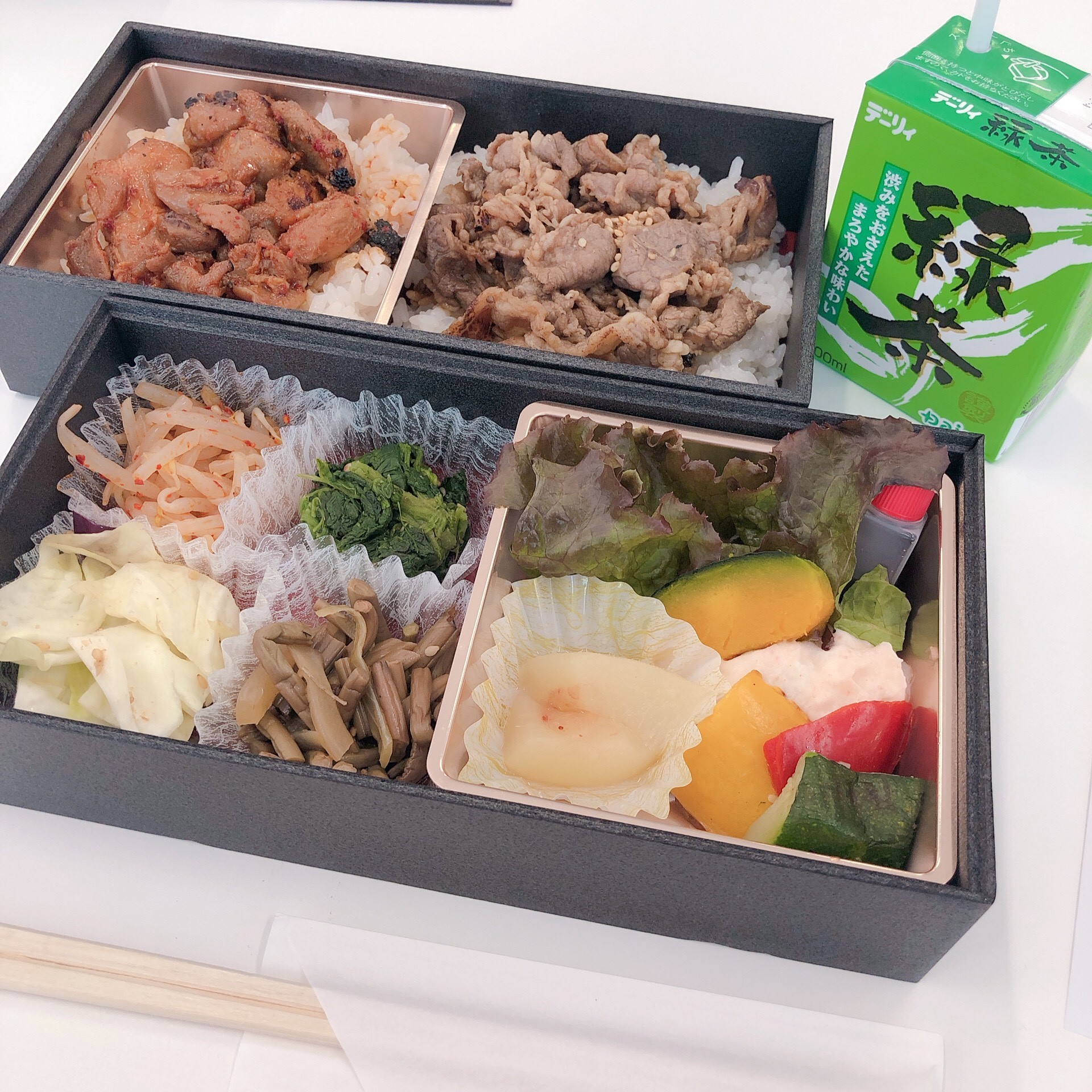お弁当は牛カルビとダッカルビがのった二段弁当を選んでみました!